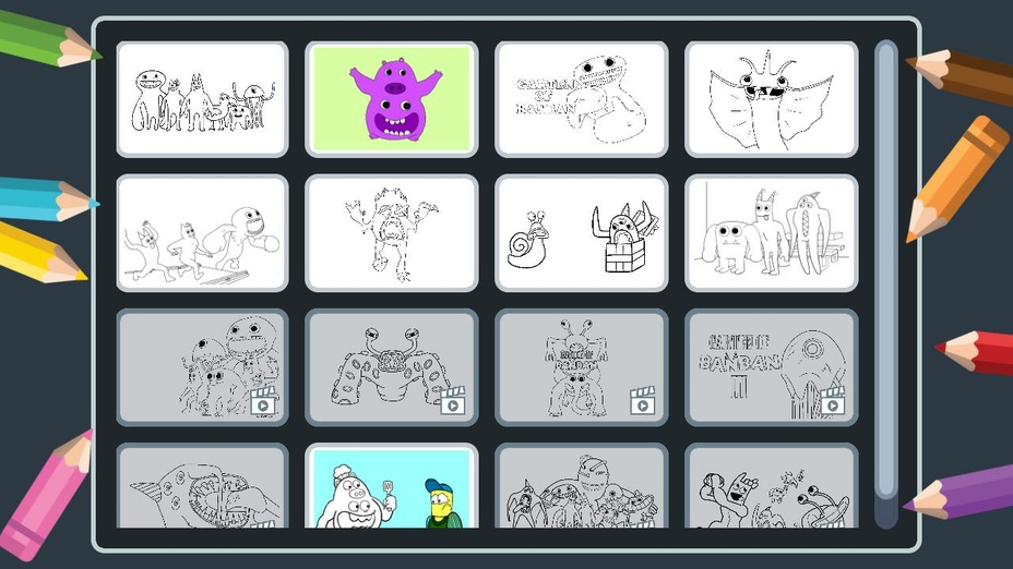 Um mit dem Banban-Ausmalen zu beginnen, wählen Sie einfach eines der 16 verfügbaren Bilder aus. Verwenden Sie die Farbpalette, um Ihre Lieblingsfarben auszuwählen, und klicken Sie dann auf die Bereiche, die Sie ausfüllen möchten. Mit dem Radiergummi-Werkzeug können Sie einfach zwischen Farben wechseln und Fehler rückgängig machen. Das Spiel ist benutzerfreundlich und erleichtert Kindern das Navigieren und Genießen.