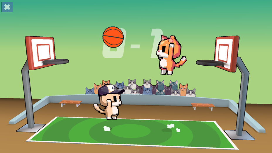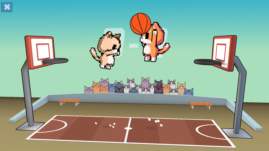 Beginne, indem du deine bevorzugte Katzenfigur auswählst. Auf einem Mobilgerät tippst du auf den Bildschirm, um deine Katze springen und den Basketball zu schießen. Am Computer verwendest du die linke Maustaste für den gleichen Effekt. Timing ist entscheidend — lande deine Sprünge, wenn der Ball in der Nähe ist, um zu punkten oder deinen Gegner effektiv zu blocken.