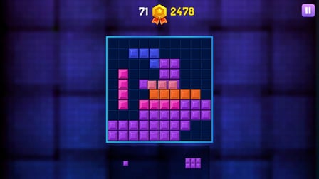 Beginnen Sie, indem Sie die angegebenen farbigen Blöcke auf das Gitter legen. Das Ziel ist es, horizontale oder vertikale Linien zu füllen, um sie vom Brett zu entfernen. Verwenden Sie Ihre Maus, um die Blöcke per Drag & Drop an die gewünschten Positionen auf einem Computer zu ziehen, oder tippen und verschieben Sie sie auf Ihrem Telefon. Das Spiel wird fortgesetzt, bis für den nächsten Block kein Platz mehr frei ist.