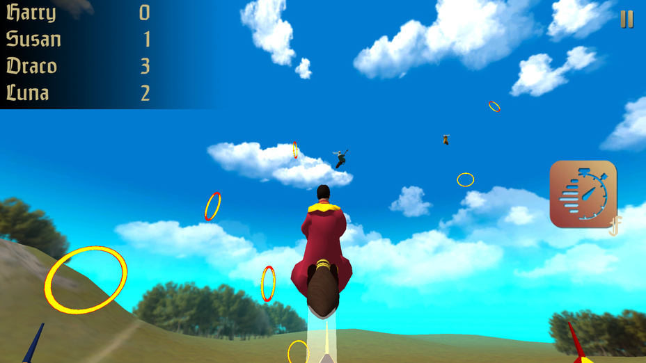 - Sammle Power-Ups, um die Geschwindigkeit deines Besens zu verbessern