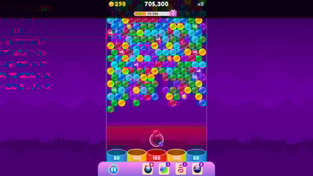 Konzentrieren Sie sich darauf, Blasen in Gruppen zu räumen und zielen Sie auf spezielle Blasen für zusätzliche Boni!