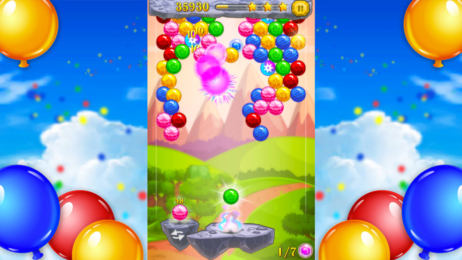 - Lösche alle Blasen, um zum nächsten Level zu gelangen.