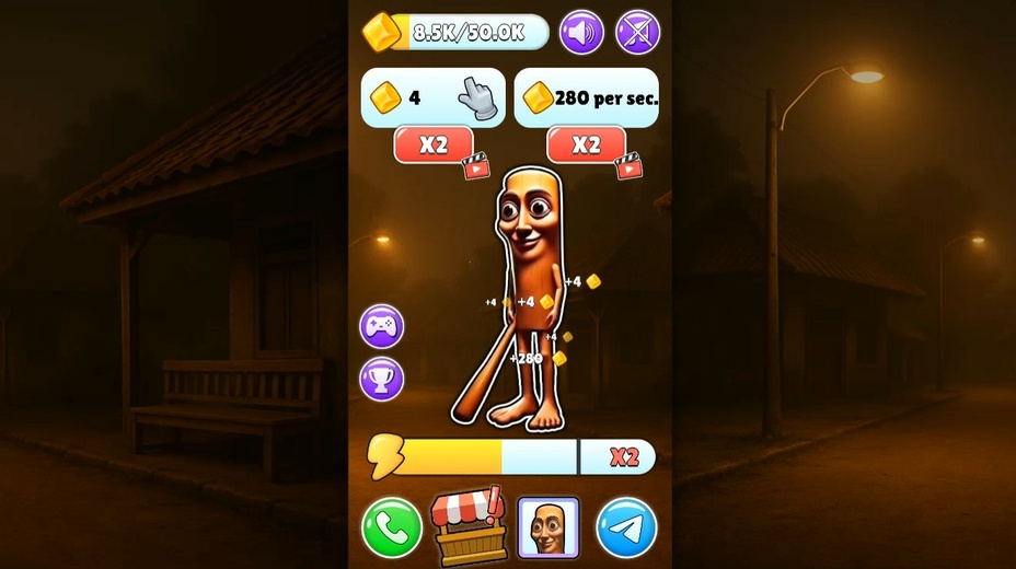 Tippe einfach auf deinen mobilen Bildschirm oder klicke mit der Maus auf deinen Computer. Jeder Tipp generiert Währung, während verschiedene Upgrades durch Klicken auf Schaltflächen im Shop angeboten werden können. Das Rufen anderer Tung-Tungs erfolgt über einfach zu navigierende Menüs, die dein Gameplay Erlebnis bereichern.