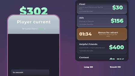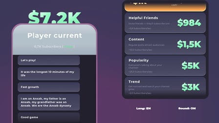 Channel Clicker: RISE TO THE TOP! verbindet beeindruckende Grafiken mit einem fesselnden Gameplay-Zyklus, bei dem die Spieler die spannende Reise vom anonymen Neuling zum Ruhm durchlaufen. Die lebendige Grafik und die intuitiven Steuerungen tragen zum Charme des Spiels bei, während die steigende Herausforderung die Spieler fasziniert hält.