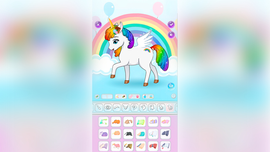 - Ziehe Gegenstände per Drag & Drop auf dein Einhorn