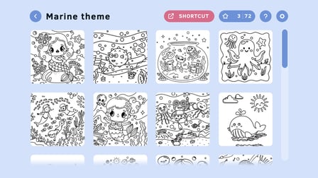 Im kostenlosen Online-Malbuch haben Sie die Freiheit, aus einer Vielzahl von Sammlungen auszuwählen, sodass Sie Bilder erkunden und ausmalen können, die Ihren Interessen und Ihrer Stimmung entsprechen. Da jede Sammlung ein einzigartiges Thema bietet, können die Spieler in verschiedene fantasievolle Umgebungen eintauchen und ihre ausgewählten Bilder zum Leben erwecken. Das Spiel richtet sich an ein breites Publikum und richtet sich an Kinder, Jugendliche und sogar Erwachsene, die Freude an entspannender Kreativität haben. Egal, ob Sie ein Fan von niedlichen Tieren, Fabelwesen wie Einhörnern und Meerjungfrauen oder der Weite des Weltraums sind, es wartet eine Sammlung auf Sie. Unabhängig von Ihrem Alter ist das kostenlose Online-Malbuch eine unterhaltsame Flucht in die Welt der Kunst und Fantasie.