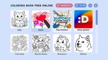 Malbuch kostenlos online ist ein Einzelspieler-Erlebnis, das sich auf persönliche Kreativität konzentriert. Sie können Ihre fertigen Kunstwerke jedoch über soziale Medien oder Messaging-Apps mit Freunden teilen.