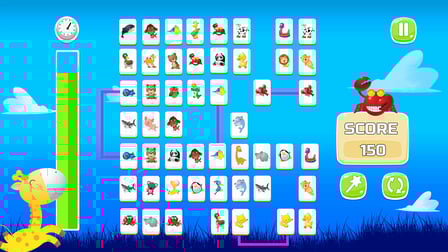 Das Hauptziel von Connect Animals: Onet Kyodai besteht darin, alle identischen Tierplättchen zu verbinden, indem Paare mit einem klaren Pfad gefunden und ausgewählt werden, um letztendlich das Brett zu räumen.