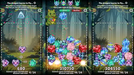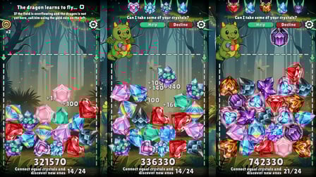 Das Match-Three-Genre hat Wurzeln, die tief in die Casual-Gaming-Szene reichen und die Spieler seit den frühen 2000er Jahren mit seinem Reiz fesseln. Connect Crystals bringt mit bunten Drachen und einer Prise Fantasie eine erfrischende Wendung in das Puzzle!