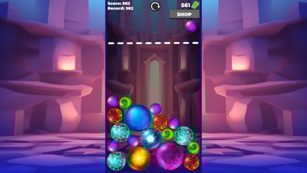 - Klicke oder tippe auf zwei benachbarte Kugeln, um sie zu verbinden und eine größere zu bilden.