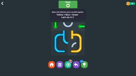 Beginnen Sie Ihr Abenteuer, indem Sie das Startlevel auswählen. Verwenden Sie Ihre Maus- oder Berührungssteuerung, um die Rohre zu drehen und einen Weg zu schaffen, auf dem das Wasser von der Quelle zum Abfluss fließen kann. Beachten Sie sorgfältig die Farbanforderungen jedes Abflusses und passen Sie Ihre Strategie an, um die Wasserströme entsprechend zu mischen. Mit zunehmendem Fortschritt werden die Rätsel komplizierter und erfordern ein scharfes Auge und einen scharfen Verstand.