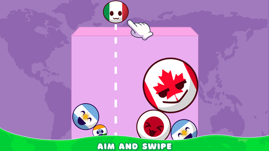 Beginnen Sie damit, zwei identische Country-BĂ€lle zu einem neuen, gröĂeren Country-Ball zu kombinieren. Verschmelzen Sie sie weiter, um noch gröĂere LĂ€nder zu schaffen. Verwenden Sie intuitive Drag-and-Drop-Mechanismen, um die BĂ€lle zusammenzufĂŒhren. Behalten Sie die verfĂŒgbaren PlĂ€tze im Auge und vermeiden Sie, dass sich das Brett vollstĂ€ndig fĂŒllt. Nutzen Sie die Entfernungs- und SchĂŒttelfunktionen, um Ihre ZusammenfĂŒhrungsstrategie zu unterstĂŒtzen.
