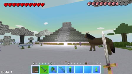 Navigiere mit WASD oder den Pfeiltasten für die Bewegung. Drücke E für Interaktionen wie Handwerk oder Sammeln. Benutze die Maus zum Bauen und Handwerken im Kreativmodus. Im Überlebensmodus rüsten Sie Waffen und Werkzeuge mit den Zifferntasten aus, um sich gegen Zombies zu verteidigen!