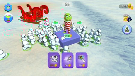 - Sammle Power-Ups, um die Fähigkeiten deiner Schneemänner zu verbessern