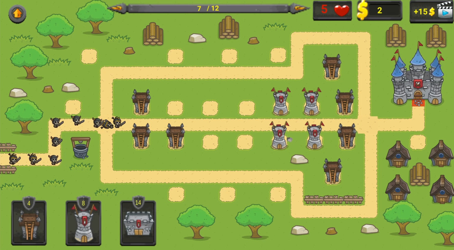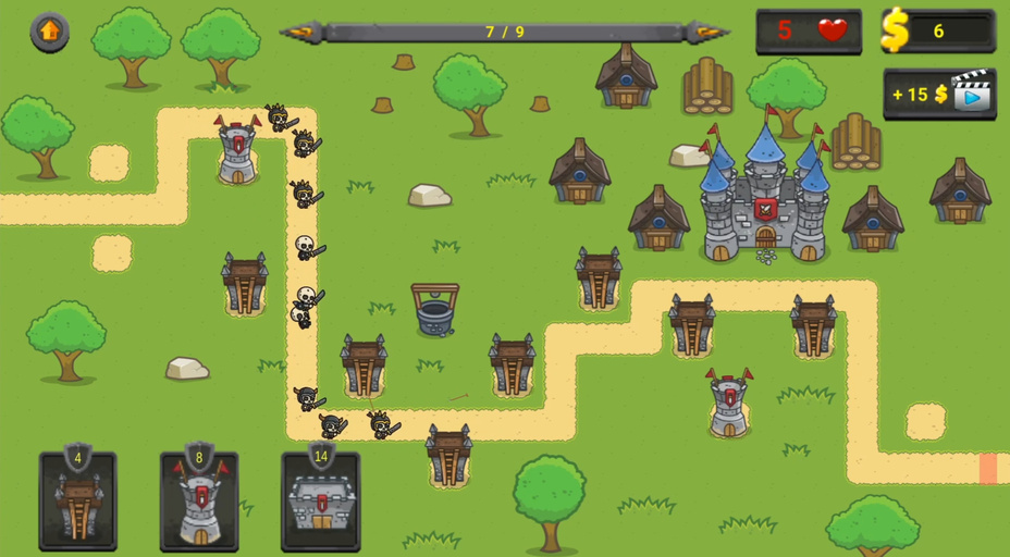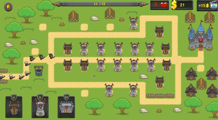 Um Defender of the Kingdom zu spielen, nutze deine strategischen Fähigkeiten, um Verteidigungsstrukturen zu errichten. Auf dem Bildschirm kannst du verschiedene Türme platzieren, um deinen Bereich zu bewachen. Klicke auf die Türme, um sie zu verbessern, oder wähle im Menü aus, welche neuen Türme du bauen möchtest. Nutze deine Ressourcen weise und achte auf die Angreifer, um deine Taktik anzupassen. Egal, ob du auf deinem Telefon oder Computer spielst, strategisches Denken ist der Schlüssel zum Sieg!