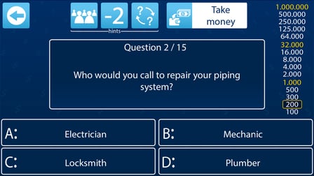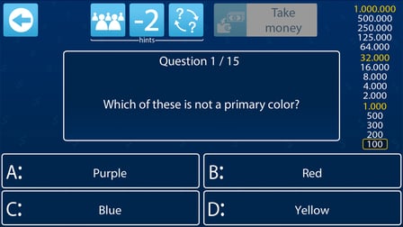 Das Hauptziel besteht darin, eine Reihe von Fragen richtig zu beantworten, um Geldpreise zu gewinnen, die in der Millionen-Dollar-Frage gipfeln.