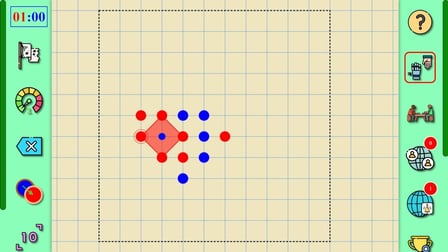 In Dots - Duel übernimmst du die Kontrolle über ein Team von Punkten, entweder blau oder rot, mit dem Hauptziel, die Punkte deines Gegners zu umgeben und gleichzeitig sicherzustellen, dass deine Punkte nicht erfasst werden. Das Spiel findet in einem Raster statt, in dem die Spieler abwechselnd ihre Punkte an den Schnittpunkten der Linien platzieren. Der Spieler, der erfolgreich mehr Punkte fängt, gewinnt das Spiel. Sie können aus verschiedenen Feldgrößen wählen, die von 10x10 bis 30x30 Punkten reichen und unterschiedliche Komplexitätsgrade und Herausforderungen ermöglichen. Dieses Spiel ist für alle Altersgruppen geeignet und bietet eine großartige Möglichkeit, Ihre Fähigkeiten im Bereich logisches Denken und Strategieentwicklung zu verbessern. Teste deinen Verstand im Mehrspielermodus gegen Freunde oder spiele alleine gegen KI- oder Online-Gegner. Ohne Registrierung können Sie direkt in die Action eintauchen und sofort mit dem Spielen beginnen.
