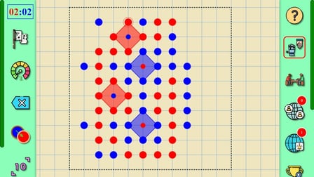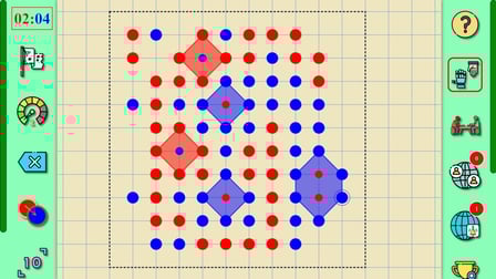 Dots - Duel ist ein aufregendes Tabletop-Spiel, in dem Sie Ihr strategisches Denken und Ihren Wettbewerbsgeist herausfordern können. Nimm in diesem Gehirntrainingsspiel an einem Duell mit einem anderen Spieler teil oder teste deine Fähigkeiten gegen künstliche Intelligenz. Spiele kostenlos online ohne Download und tauche ein in die faszinierende Welt der strategischen Gedankenspiele. Egal, ob Sie ein Fan von Logikrätseln sind oder einfach nur nach einer unterhaltsamen Art suchen, sich die Zeit zu vertreiben, Dots - Duel bietet ein einzigartiges Erlebnis für Spieler jeden Alters. Mit seiner einfachen, aber herausfordernden Mechanik ist dieses Spiel perfekt, um Ihre Aufmerksamkeit und Ihre strategischen Planungsfähigkeiten zu verbessern.
