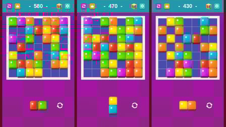 Punkte werden gesammelt, indem drei oder mehr Blöcke derselben Farbe ausgerichtet werden. Je mehr du ausrichtest, desto höher ist deine Punktzahl!