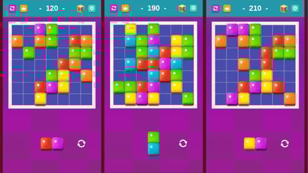Double Block Master lädt die Spieler in eine visuell beeindruckende Umgebung ein, die mit lebhaften Farben und herausfordernden Rastersystemen gefüllt ist. Das Ziel ist einfach, aber fesselnd: Platziere Blöcke strategisch, um Kombinationen zu erstellen und Level zu räumen. Der rotierende Kreis fügt eine aufregende Wendung hinzu, die sowohl Geschick als auch Weitsicht erfordert, um das Brett effektiv zu navigieren.