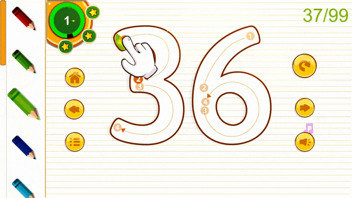 Um das Zeichnen der Zahlen mit russischer Stimme zu meistern, wählen Sie zunächst einen Bleistift aus und zeichnen Sie die russischen Zahlen innerhalb der vorgegebenen Zeit. Hören Sie genau auf ihre Aussprache, um das Lernen zu verstärken. Sammle Sterne, indem du Levels erfolgreich abschließt und nutze sie, um neue Herausforderungen freizuschalten. Das Spiel fördert die kontinuierliche Verbesserung, da Sie jedes Level erneut besuchen und wiederholen können.
