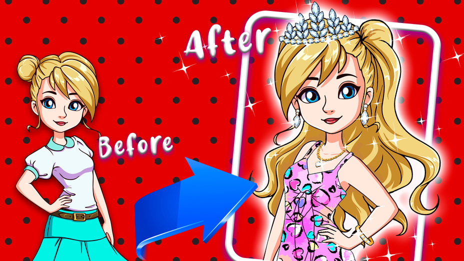 Du kannst aus einer fantastischen Auswahl an Kleidern, Tops, Röcken, Accessoires und sogar Haustieren für deinen Look wählen!