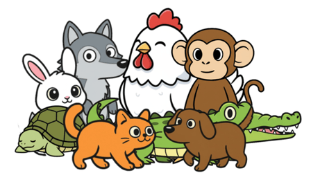- 8 einzigartige Tiere: Huhn, Wolf, Krokodil, Affe, Katze, Hund, Hase, Schildkröte. Jedes mit anderer Physik.