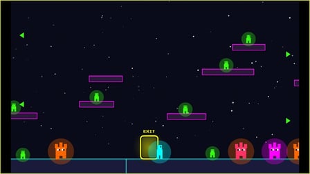 Bewege deinen Charakter mit den Pfeiltasten oder WASD und springe durch Drücken der Leertaste. Sammele die kleinen Typen, damit sie dir folgen, und bringe sie sicher zum Ziel.