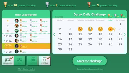 Kann ich Durak auf meinem Handy spielen? Ja, Durak: Classic Challenge kann sowohl auf Telefonen als auch auf Computern gespielt werden.