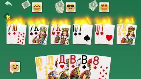 Navigiere mit deiner Maus oder deinem Touchscreen durch das Spiel. Klicke oder tippe, um während deines Zuges Karten auszuwählen und zu spielen. Die Benutzeroberfläche ist intuitiv und ermöglicht ein reibungsloses Gameplay, unabhängig davon, ob Sie einen Computer oder ein mobiles Gerät verwenden. Achten Sie auf die Eingabeaufforderungen und entscheiden Sie mit strategischem Denken über Ihren nächsten Schritt.
