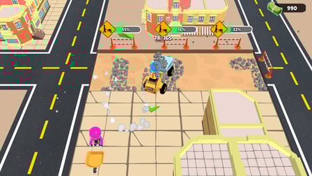 Aktivieren Sie Ihre Straßen und wählen Sie Bereiche aus, die Sie erstellen möchten. Die anfänglichen einfachen Wege könnten Dinge wie Parkplätze und Spielplätze umfassen; Später werden Sie kommen, um Hauptstraßen zu bauen. Sammle Ressourcen und investiere in die Aufrüstung deiner Ausrüstung. Jedes Mal, wenn Sie ein Level bestehen, gibt es neue Instrumente und Maschinen, mit denen Sie immer effizienter bauen können. Erfülle kontinuierlich Aufgaben und erweitere so deine Stadt mit dem ultimativen Ziel, Straßenbauer zu werden.