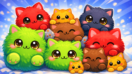 - Physikbasierte Verschmelzung: Lass die runden Katzen-Sprites fallen und überlass die Schwerkraft dem Rest. Gleiche zwei identische Katzen aus, um sie in die nächste Evolutionsstufe zu fusionieren.