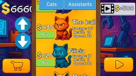 Um auf deinem Computer zu spielen, wähle deinen Lieblingskätzchenkämpfer aus und mach dich bereit für Action. Nutze die WASD-Tasten oder die Pfeiltasten zur Bewegung und die Maus für gezielte Angriffe. Auf deinem Handy berühre die Steuerelemente auf dem Bildschirm, um dich zu bewegen und effizient in den Kampf einzutreten. Mach dich bereit, deiner Wut gegen diese lästigen Roboter freien Lauf zu lassen!