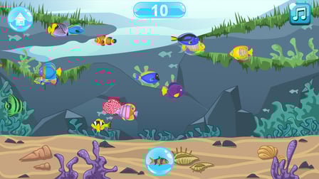 Find the Fish ist ein aufregendes Kinderspiel, in dem Sie Ihre Aufmerksamkeit und Geschicklichkeit testen können, indem Sie die notwendigen Fische fangen und in eine Blase legen. Spielen Sie kostenlos online ohne Download und tauchen Sie ein in die spielerische und spannende Welt des Angelspaßes. Dieses browserbasierte HTML5-Spiel eignet sich für Spieler jeden Alters und bietet eine reizvolle Erfahrung, egal ob Sie wettbewerbsfähig oder nur zum Spaß spielen. Mit seinen lebendigen Grafiken und einfachen Steuerelementen wird Find the Fish Kinder und Jugendliche gleichermaßen faszinieren und eine perfekte Mischung aus Unterhaltung und Gehirntraining bieten.