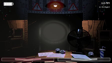 - Linksklick: Zur Steuerung der Lichter und Türen, die für die Verteidigung gegen Animatronik unerlässlich sind.