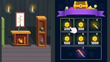 Die Steuerung von Flip Knfe ist intuitiv: Klicke einfach oder tippe auf den Bildschirm, um das Messer zu werfen. Jedes Mal, wenn du tippst, wird das Messer drehen und versuchen, die Plattform zu treffen.