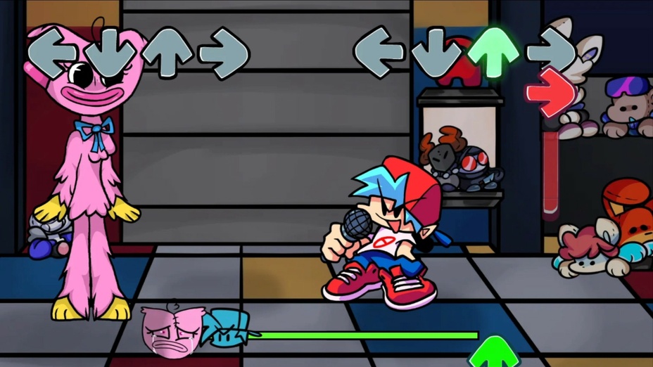 Verwenden Sie die Pfeiltasten, um die Noten anzupassen, wenn sie sich nähern, und treten Sie in einer Rap-Battle-Umgebung gegen Charaktere wie Huggy Wuggy an.
