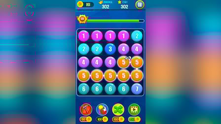 Connect the Balls by Numbers fasziniert mit seinen lebendigen Visualisierungen und einfachen, aber süchtig machenden Mechaniken. Das Ziel, Blasen zu fusionieren, um größere Zahlen zu erzeugen, ist nicht nur fesselnd; es fordert dein strategisches Denken heraus, während du deine Züge planst, um die höchstmögliche Punktzahl zu erreichen und den begrenzten Spielraum zu verwalten.