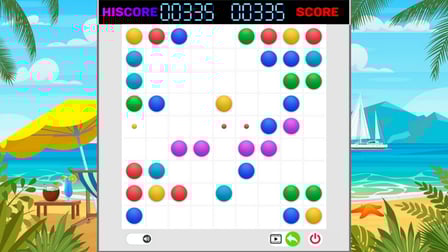 Um Color Balls Lines 98 auf Ihrem Telefon oder Computer zu spielen, befolgen Sie diese Schritte: 1. Starten Sie das Spiel in Ihrem Browser. 2. Ziehen Sie einfach die farbigen Bälle über das Feld. 3. Ziel ist es, Linien aus fünf oder mehr Bällen derselben Farbe zu bilden. 4. Entfernen Sie Linien, um Punkte zu sammeln und das Spiel am Laufen zu halten. 5. Planen Sie weiter strategisch und haben Sie Spaß!