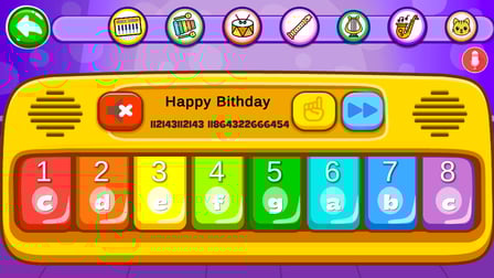 Ermutigen Sie Ihre Kinder, verschiedene Klänge zu entdecken, indem sie mit verschiedenen Instrumenten experimentieren. Für ein verbessertes Gameplay schlagen Sie vor, dass sie ihre Melodien miteinander mischen und ihre Kreationen aufnehmen, um später zu üben oder mit Freunden zu teilen.
