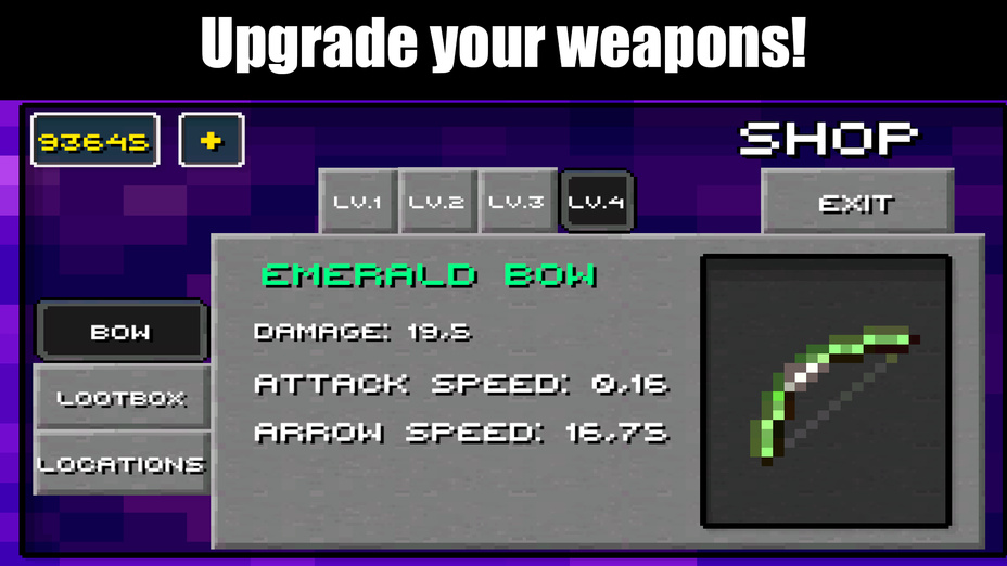 Beherrsche die Kunst des Schießens und des Überlebens, indem du immer Loot-Boxen sammelst, um deine Waffen zu verbessern. Nutze das Design der Arena, um deine Angriffe strategisch zu planen und dich gegen Wellen von Feinden zu verteidigen. Das Auswendiglernen der Verhaltensmuster der Kreaturen wird deine Überlebenschancen auch steigern!