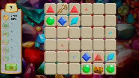 - Wische oder klicke, um Edelsteine zu bewegen