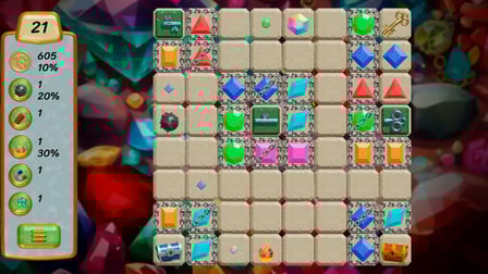 Gems 2: Match 3 ist ein aufregendes Puzzlespiel, in dem Sie bunte Edelsteine in Reihen kombinieren können, um komplizierte Rätsel zu lösen. Spielen Sie kostenlos online ohne Download und tauchen Sie ein in die pulsierende Welt der Edelsteine und Schatztruhen, gefüllt mit Goldmünzen und Schlüsseln. Dieses Spiel fordert nicht nur Ihre logischen Denkfähigkeiten heraus, sondern bietet auch eine fesselnde Möglichkeit, sich die Zeit zu vertreiben. Mit hellen Grafiken und verlockendem Gameplay wird Gems 2: Match 3 Sie auf verschiedenen Plattformen unterhalten, einschließlich Desktop, Android und iOS. Genießen Sie ein nahtloses Spielerlebnis ohne Registrierung, während Sie in dieses Indie-Juwel eintauchen, das Ihre Geistes- und Aufmerksamkeitsfähigkeiten steigert.