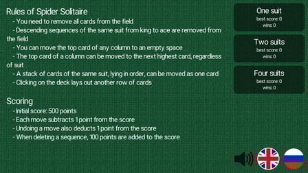 In Good Old Spider Solitaire übernimmst du die Kontrolle über die Karten, um sie strategisch in Sequenzen von König bis Ass zu sortieren. Sie werden auf drei Schwierigkeitsgrade stoßen: einen Anzug, zwei Anzüge und vier Anzüge, die jeweils eine einzigartige Herausforderung bieten und erhöhte Fähigkeiten erfordern. Das Spiel verfolgt Ihre Punkte, Siege und Rekorde und ermutigt Sie, sich mit jeder Runde zu verbessern. Mit einem Fokus auf Logik und Aufmerksamkeit richtet sich dieses Spiel an Kartenliebhaber jeden Alters und bietet ein geistig anregendes Erlebnis ohne Altersbeschränkungen. Es ist ein perfekter Zeitvertreib für diejenigen, die klassische Kartenspiele auf ihrem Desktop oder Mobilgerät genießen.