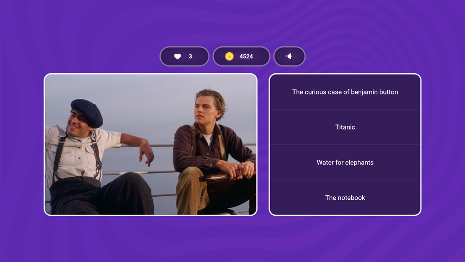 In Guess the Movie schlüpfen Sie in die Rolle eines Filmdetektivs mit dem Hauptziel, Filme anhand von ikonischen Bildern zu identifizieren. Sie werden auf unzählige Bilder aus einer Vielzahl klassischer und zeitgenössischer Filme stoßen, die jeweils scharfe Beobachtung und ein gutes Gedächtnis erfordern. Das Spiel verfügt über ein robustes Punktesystem, mit dem Sie Bewertungen verdienen und gegen andere Spieler um den ersten Platz in der Rangliste antreten können. Dieses Spiel ist für Jugendliche und Erwachsene geeignet und unterliegt keinen Altersbeschränkungen, sodass es für alle Filmbegeisterten zugänglich ist. Egal, ob Sie ein erfahrener Cineast oder ein Gelegenheitszuschauer sind, Guess the Movie bietet eine unterhaltsame und intellektuell anregende Herausforderung, die Ihr Kinokenntnis auf die Probe stellt.