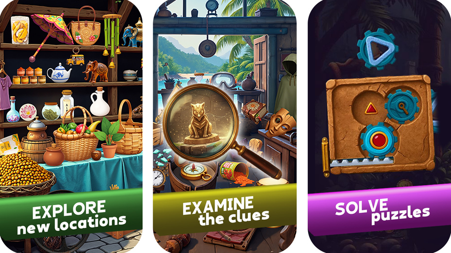 Entdecke die verborgenen Schätze einer tropischen Insel in Hidden Objects: Find the Treasure. Schlüpfe in die Rolle von Sophia, einer mutigen Abenteurerin, die versucht, das Geheimnis um ihren verschwundenen Großvater Victor zu lüften. Erlebe fesselnde Gameplay-Elemente, indem du zahlreiche Rätsel löst, während du durch die exotischen Schauplätze der fantastischen Landschaft von Kalao-Terra navigierst.