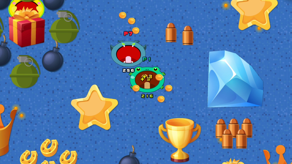 - Sammle Power-Ups, um deine Waffen zu verbessern und größer zu werden