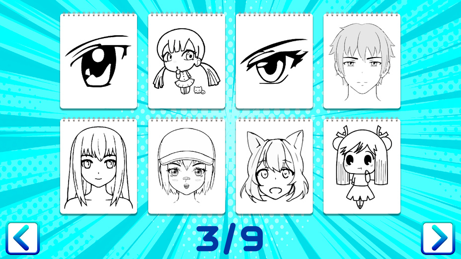 Das Zeichnen von Anime-Manga ist ein aufregendes Lernspiel, in dem Sie lernen können, atemberaubende Anime-Manga-Illustrationen zu erstellen. Spiele kostenlos online ohne Download und tauche ein in die pulsierende Welt der Anime-Kunst. Diese benutzerfreundliche Anwendung wurde für aufstrebende Künstler entwickelt, die die Kunst des Zeichnens von Anime-Manga anhand einfacher Schritt-für-Schritt-Anleitungen beherrschen möchten. Egal, ob Sie Anfänger oder erfahrener Künstler sind, dieses Spiel ist darauf zugeschnitten, Ihre Fähigkeiten zu verbessern und Ihre Kreativität zum Leben zu erwecken.