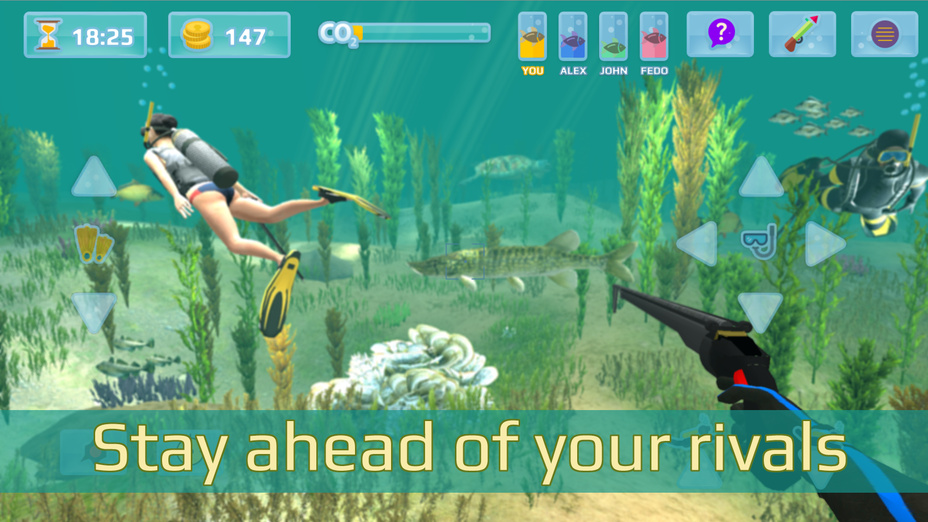 Mach dich bereit wie ein echter Taucher! Verbessere deine Ausrüstung: Harpunen, Masken und Sauerstofftanks. Bekämpfe gefährliche Meeresräuber und weiche giftigen Kreaturen aus, um in der feindlichen Unterwasserumgebung zu überleben. Entdecke neue Orte und verdiene Belohnungen von deinen Jagden, um dich mit jedem Tauchgang zu verbessern.