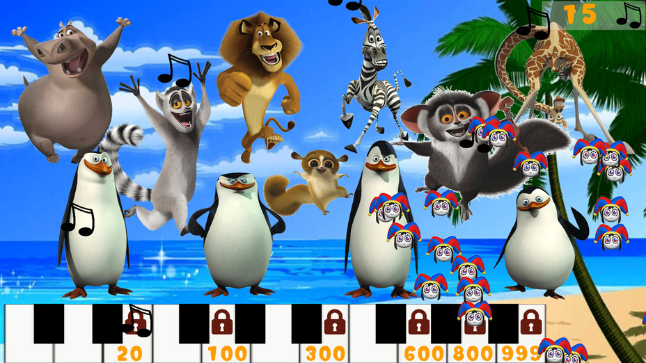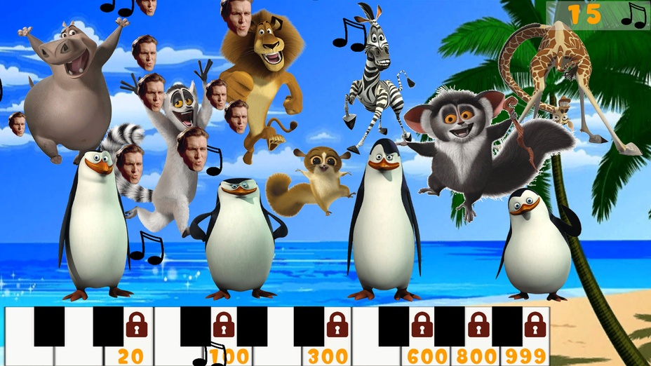 Es ist ein musikalisches Spiel, bei dem Spieler Pinguine steuern, um fallende Noten zu sammeln und Musik auf einem virtuellen Klavier zu erstellen.